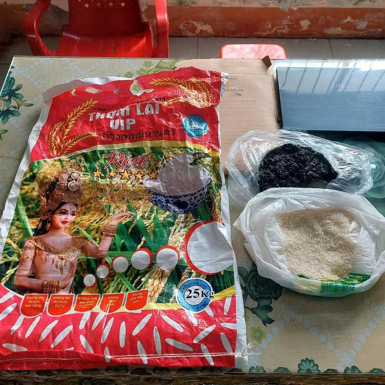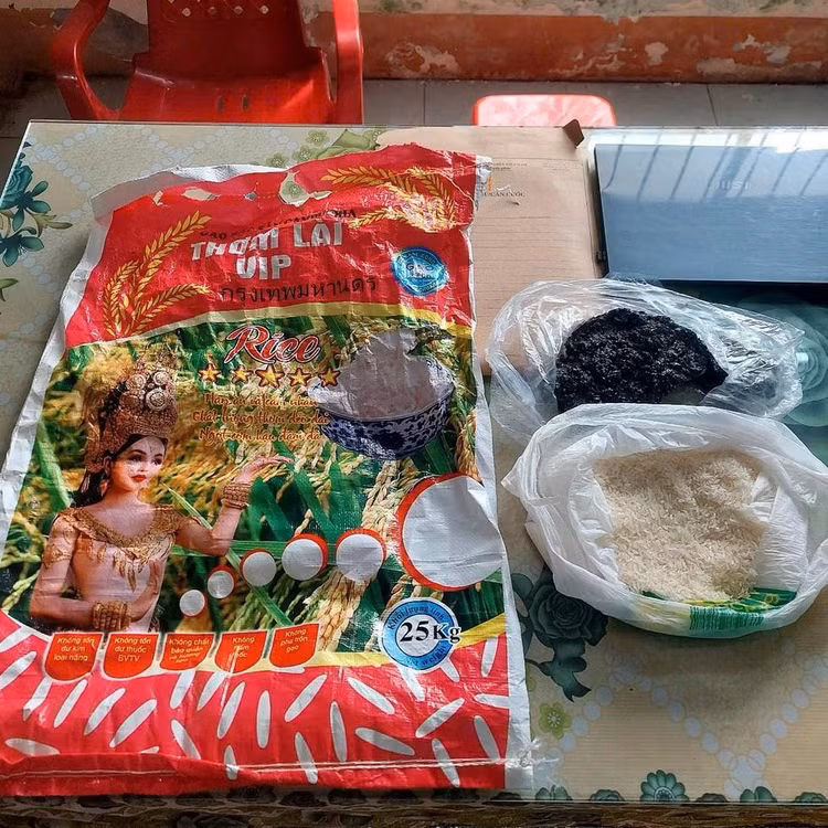 Sau đó, người này đem gạo về nấu cháo. Tuy nhiên, khi rang thì gạo chuyển sang màu đen, hạt gạo dính vào nhau và có dấu hiệu bị cháy đen. Thấy gạo bất thường, người này đem số gạo trên đến cơ quan công an trình báo.