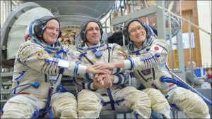 Đại diện phi hành đoàn mới trêntàu vũ trụ quốc tế gồm các nhà khoa học Scott Tingle của NASA, Anton Shkaplerov của cơ quan vũ trụ Nga Roscosmos và Norishige Kanai thuộc Cơ quan Thám hiểm Hàng không Vũ trụ Nhật Bản, tất cả đã đặt chân lên Trạm Vũ trụ ISS.