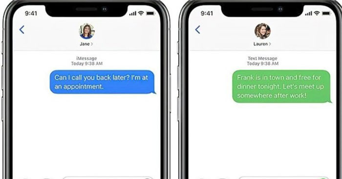 Hiện tại, thiết bị Apple sử dụng song song hai hệ thống nhắn tin và dùng hai màu khác nhau để phân biệt. Tin nhắn xanh dương thể hiện người gửi và người nhận dùng máy chạy hệ điều hành iOS và macOS, tức cùng hoạt động trên nền tảng iMessage. Tin nhắn xanh lá đánh dấu hội thoại gửi qua giao thức SMS/MMS truyền thống, cho thấy người gửi sử dụng máy Android hoặc iPhone không kết nối mạng.