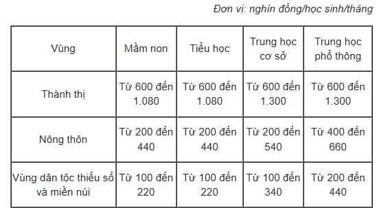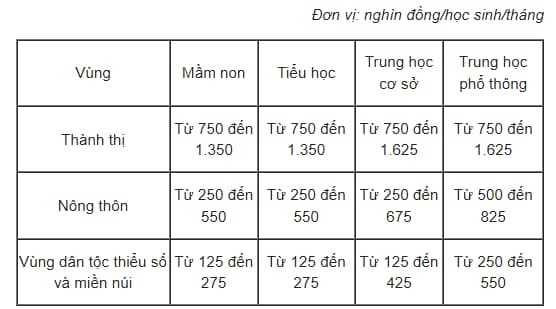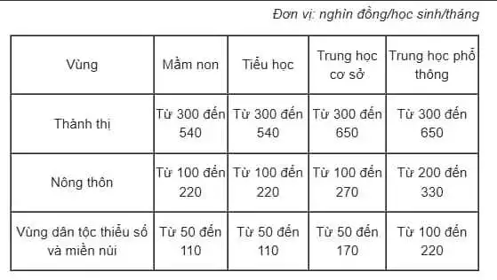 Căn cứ theo quy định tại Nghị định 81/2021/NĐ-CP, khung học phí năm học 2022 - 2023 tại các tỉnh, thành phố được thực hiện như sau: