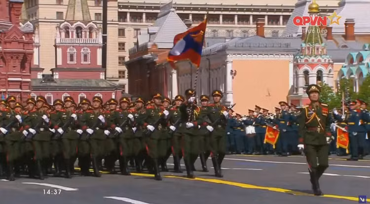 14h37: Khối quân đội nước ngoài tiếp tục tiến qua lễ đài.
