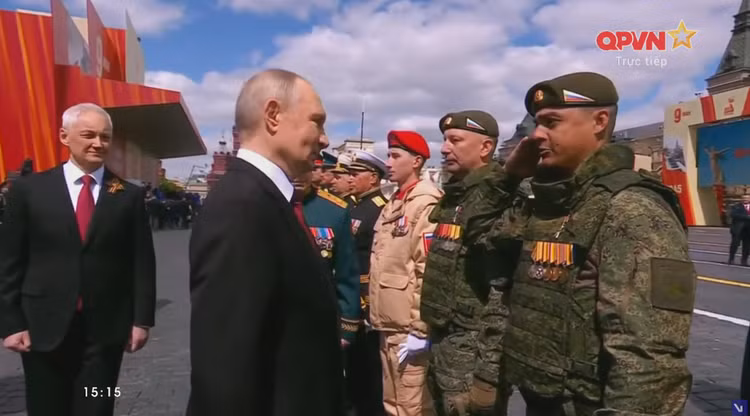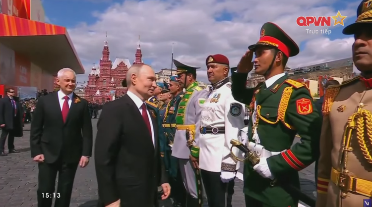 Sau khi kết thúc cuộc duyệt binh, Tổng thống Vladimir Putin đã đến gặp các chỉ huy của đội hình nghi lễ, trong đó có trưởng khối Quân đội Nhân dân Việt Nam và đích thân chào từng người.