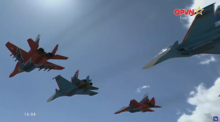 15h08: Lực lượng Không quân Nga bắt đầu trình diễn.
