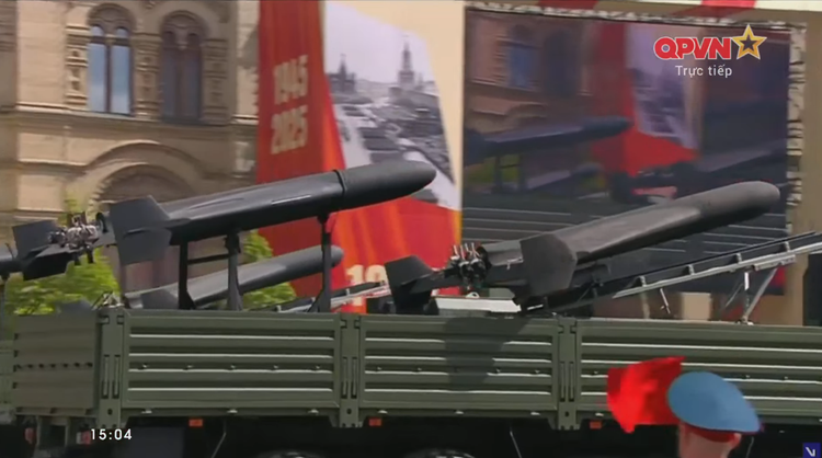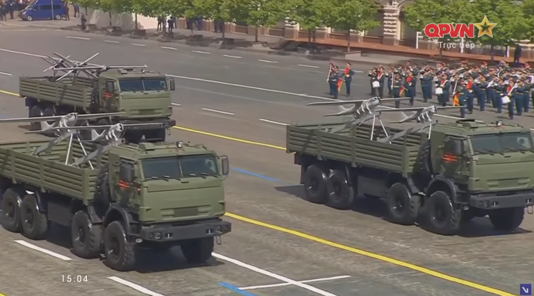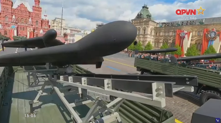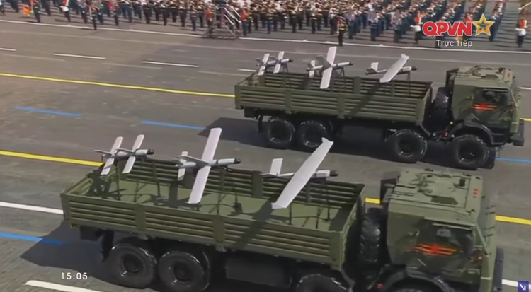 Các cụm bệ phóng máy bay không người lái (UAV) trinh sát và tự sát được chở trên xe tải KamAZ-6350 tiến qua lễ đài, đánh dấu lần đầu những khí tài này xuất hiện trong Duyệt binh Chiến thắng.