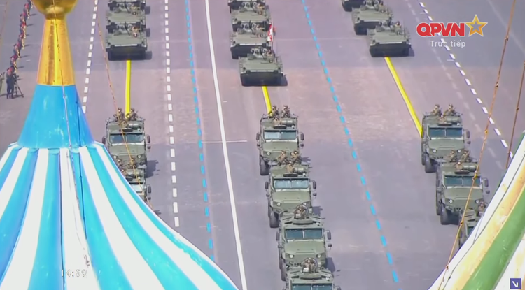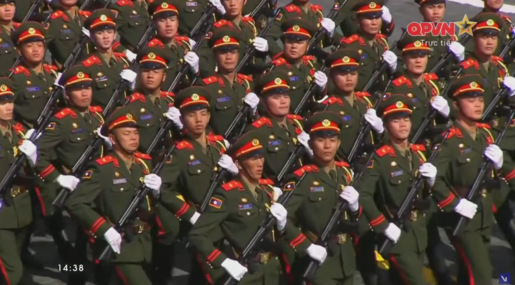 14h38: Khối quân đội nước ngoài tiếp tục tiến qua lễ đài.