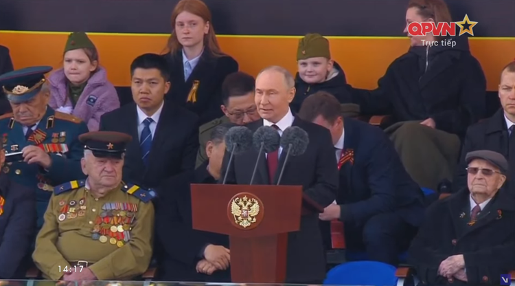 Tổng thống Nga ca ngợi cuộc Chiến tranh Vệ quốc Vĩ đại và những hy sinh mà người dân Liên Xô đã đổ xuống để chống lại chủ nghĩa phát xít. "Chúng ta kỷ niệm Ngày Chiến thắng 9/5 như một sự kiện lớn của toàn thể dân tộc", ông Putin nhấn mạnh.