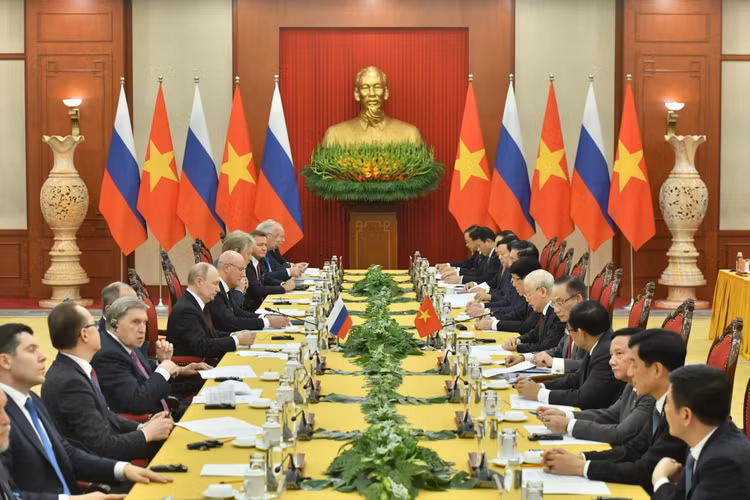 Chiều 20/6/2024, Tổng Bí thư Nguyễn Phú Trọng có cuộc hội đàm với Tổng thống Liên bang Nga Vladimir Putin tại Văn phòng Trung ương Đảng trong khuôn khổ chuyến thăm cấp Nhà nước tới Việt Nam. Ảnh: Báo Chính phủ