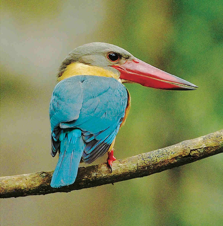 7. Sả mỏ rộng: Thường sống tại các sông, hồ lớn hoặc khu vực gần rừng lá rộng, có màu xanh chủ đạo ở đôi cánh và vàng ở cổ.
