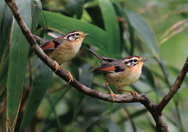 9. Khướu mào họng đốm: Thường gặp ở khu vực Tây Bắc và Trung Trung Bộ, đặc biệt ở trong vườn quốc gia Hoàng Liên Sa Pa, có mào cao, nhọn hướng lên trên và sống trong các khu rừng lá rộng và rừng hỗn giao từ độ cao 1.800-3.100 m.
