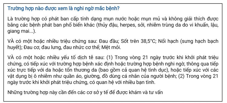 Tại Việt Nam, Monkey pox là bệnh truyền nhiễm nhóm B. Ngay từ khi phát hiện ca Monkey pox đầu tiên xâm nhập từ nước ngoài, Sở Y tế đã chỉ đạo Trung tâm Kiểm soát bệnh tật Thành phố và các bệnh viện, phòng khám… triển khai các hoạt động giám sát và truyền thông phòng chống sự lây lan của bệnh.Monkey pox.