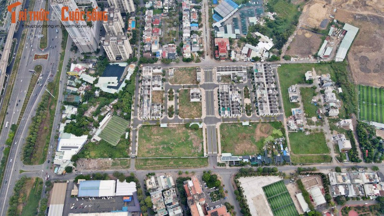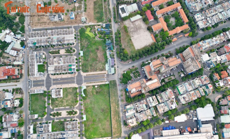 Từ góc máy này, có thể thấy ngoài đường Vũ Tông Phan, còn có một số tuyến đường khác kết nối hai khu đô thị cũng bị tắc bởi Dự án An Phú New City.