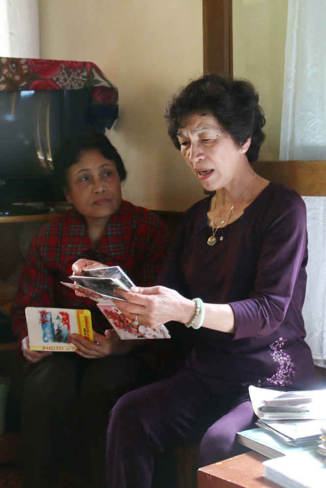 Niềm vui tuổi già của hai người mẹ Hồ Thị Thanh Tùng (trái) và mẹ Võ Thị Đào là ngắm lại những bức ảnh của các con mình đã nuôi dưỡng.