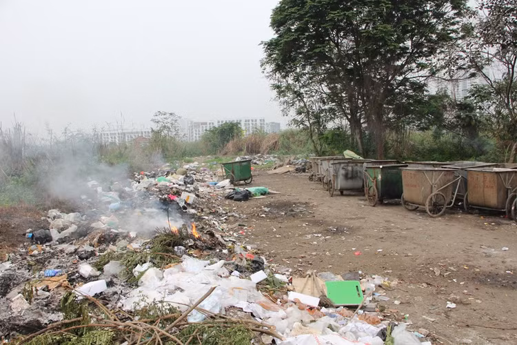 Ngay trong điểm công nghiệp Di Trạch (huyện Hoài Đức) cũng diễn ra tình trạng đốt chất thải gây ô nhiễm môi trường. Cuối đường khu đô thị Xuân Phương (quận Nam Từ Liêm) trở thành điểm tập kết rác, ảnh hưởng người tham gia giao thông.