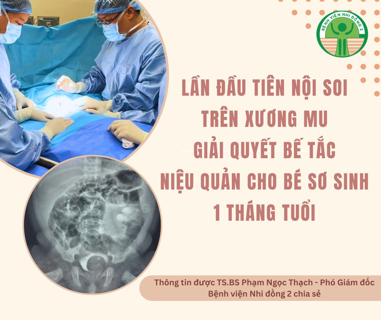 Ngày 24/1, TS.BS Phạm Ngọc Thạch, Phó Giám đốc Bệnh viện Nhi đồng 2 thông tin, lần đầu tiên bệnh viện thực hiện nội soi trên xương mu giải quyết bế tắc niệu quản cho bé sơ sinh 1 tháng tuổi.