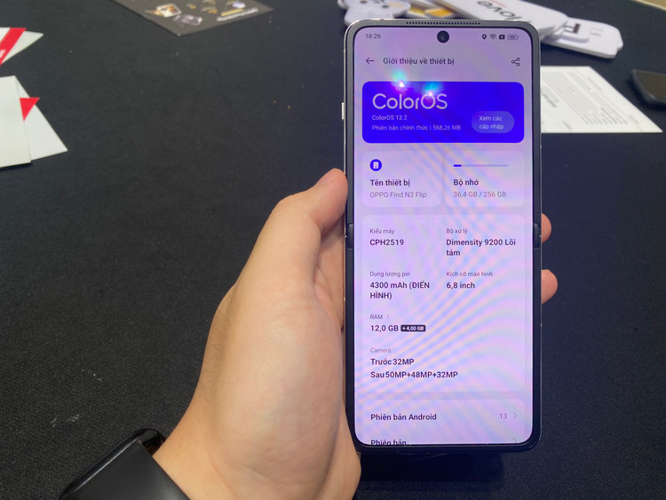 Về cấu hình, Find N3 được trang bị chip MediaTek Dimensity 9200, lượng RAM 12GB và bộ nhớ trong 25GB.