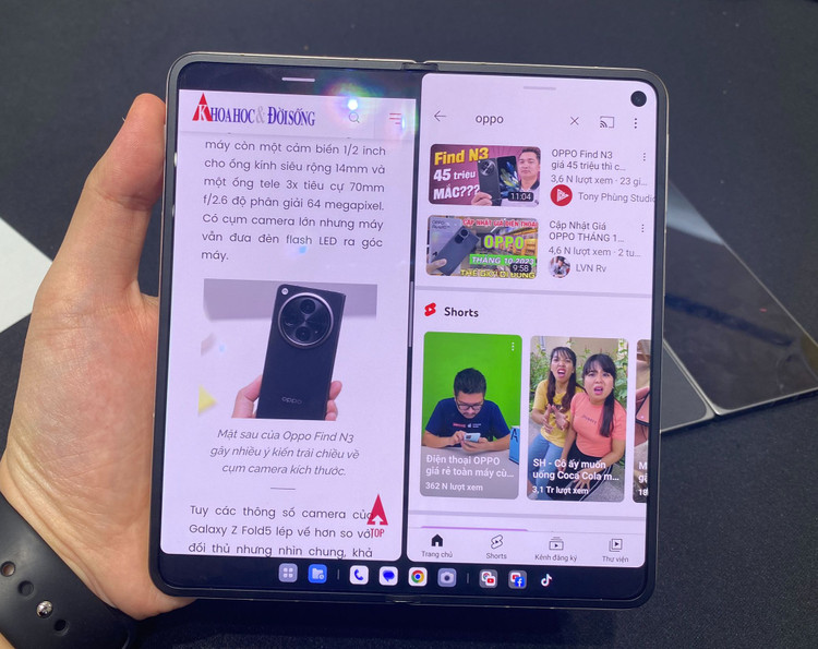Cũng với việc tận dụng lợi thế màn hình, ColorOS for Find N3 còn giúp người dùng thay đổi cách thức sử dụng điện thoại gập, mang đến những trải nghiệm đột phá không thể tìm thấy ở bất cứ đâu. Bằng thao tác vuốt chạm 2, 3 và thậm 4 ngón tay, người dùng OPPO Find N3 có thể tự do truy cập vào các tính năng đa nhiệm cực kỳ mạnh mẽ. Đó là chế độ mở đến 3 cửa sổ cùng lúc trên màn hình, giúp cho việc tìm kiếm, so sánh thông tin dữ liệu cũng như các hoạt động chuyên biệt được diễn ra dễ dàng ngay trên điện thoại.