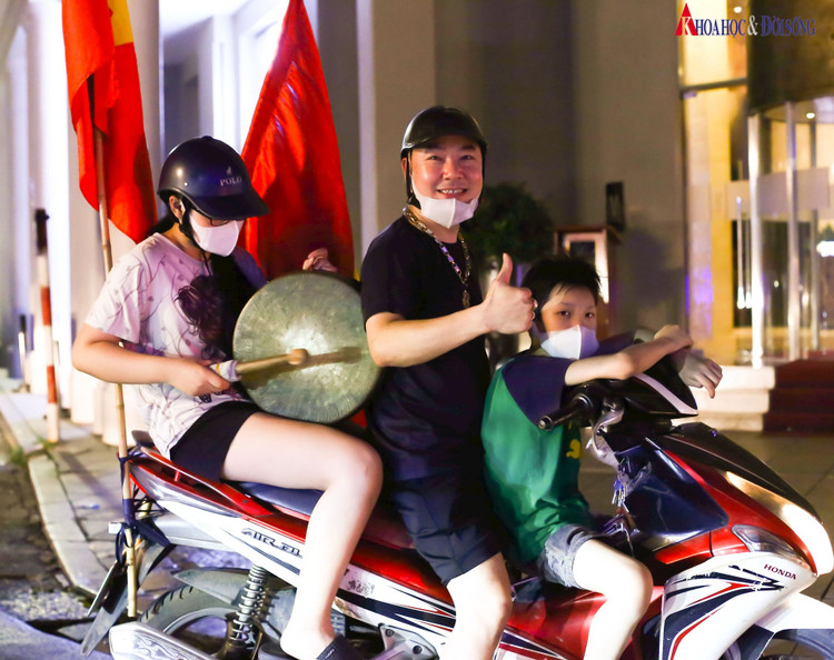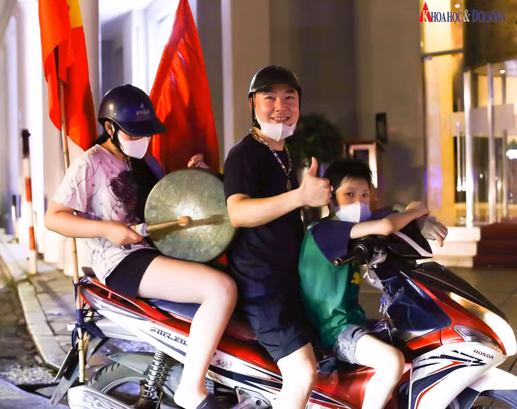 Hàng triệu con tim hòa chung không khí vui mừng chưa từng có, người cầm cờ, người cầm nồi, thau, kèn… xuống đường vòng quanh các tuyến đường trung tâm thủ đô Hà Nội.