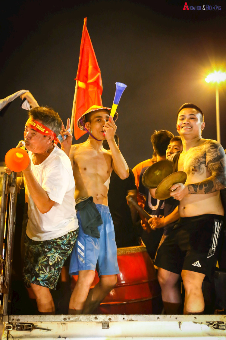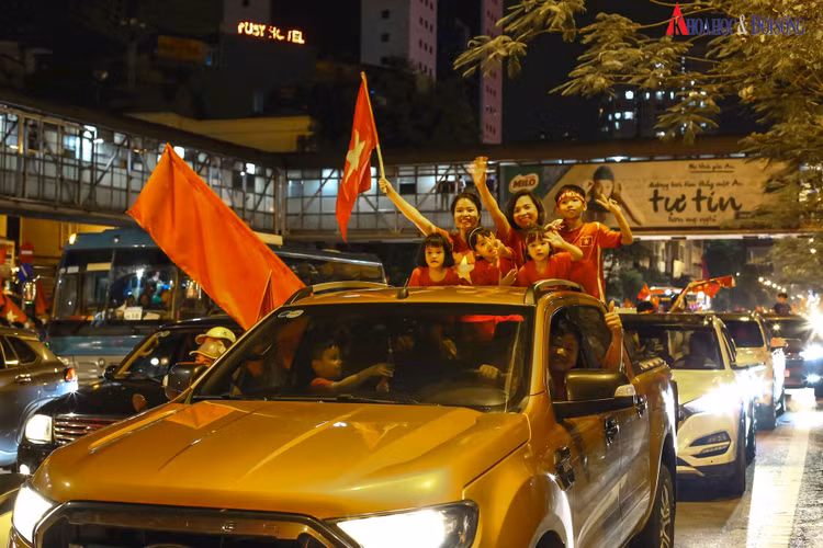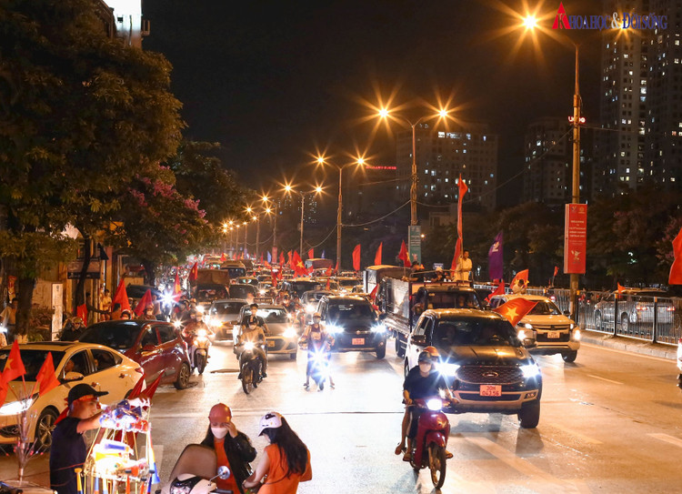 Mọi nẻo đường dẫn vào trung tâm Hà Nội đều tắc cứng Sau khi đội tuyển Việt Nam giành chiến thắng, mặc dù đã gần nửa đêm nhưng không khí vẫn rất "nóng".