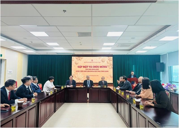 Lãnh đạo, cán bộ nhân viên VUSTA và đại biểu khách mời chúc mừng GS.VS Đặng Vũ Minh và GS.VS Trần Đình Long.