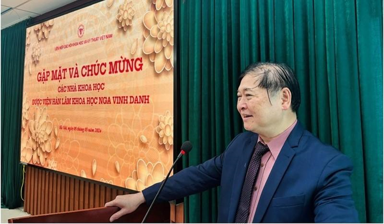 TSKH Phan Xuân Dũng, Chủ tịch VUSTA, phát biểu tại Lễ gặp mặt và chúc mừng các nhà khoa học được Viện Hàn lâm Khoa học Nga vinh danh.