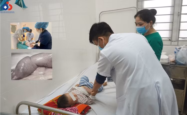 Bé N.N.B.K (19 tháng, Thanh Chương) đang chơi đùa bỗng đột ngột lên cơn đau bụng từng cơn, quấy khóc dữ dội, kèm nôn, không ho, không sốt và không đại tiện. Gia đình nhanh chóng đưa bé đến Bệnh viện Sản Nhi Nghệ An để kiểm tra. Sau khi thăm khám, thực hiện những chỉ định cận lâm sàng cần thiết, kết quả siêu âm cho thấy vùng ngang rốn phải có hình ảnh khối lồng ruột kích thước: 32x33x47 mm.
