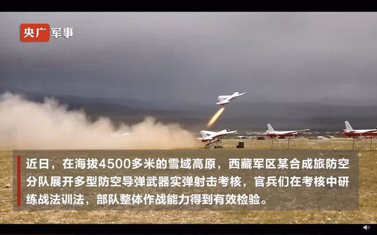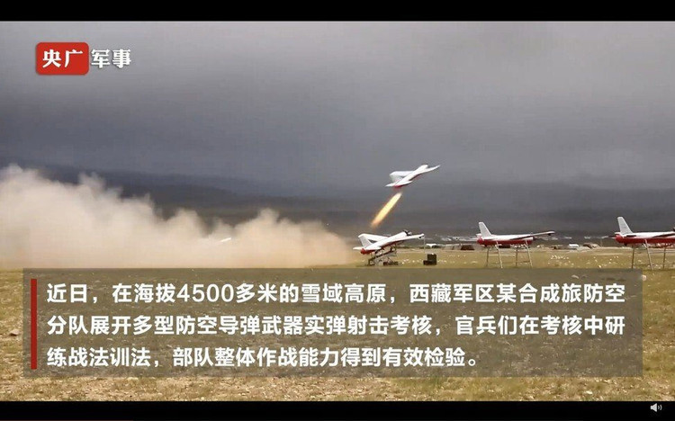 Trong một cuộc diễn tập bắn đạn thật trên cao nguyên ở độ cao 4.700m (15.400 foot), một lữ đoàn phòng không thuộc Quân khu Tây Tạng, đã sử dụng vũ khí phòng không tiêu diệt một số mục tiêu, tiếp cận khu vực phòng thủ.
