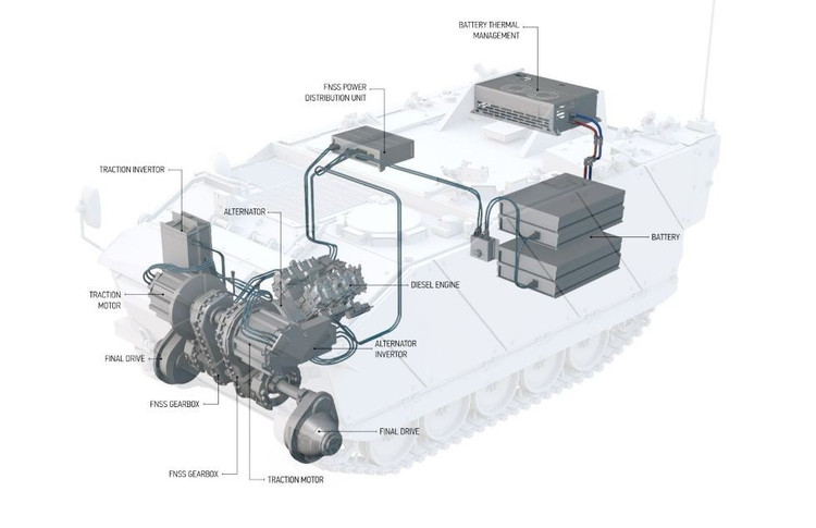 Phương tiện chiến đấu mới này kết hợp động cơ diesel truyền thống với mô-tơ điện và pin tích hợp trên xe. Cấu hình hai nguồn động lực giúp giảm tiếng ồn, cung cấp mô-men xoắn tức thì và hỗ trợ các hệ thống tiêu tốn nhiều năng lượng như phòng thủ bằng laser và các mô-đun tác chiến điện tử.