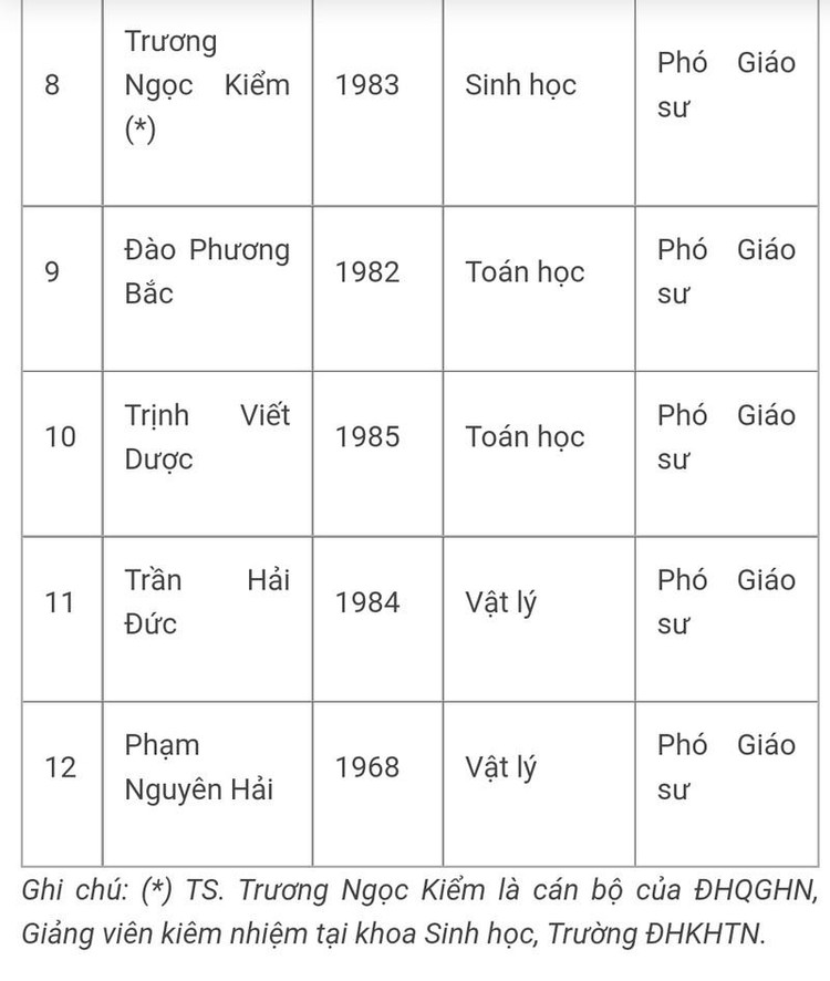 Danh sách các nhà giáo Trường ĐHKHTN được Hội đồng Giáo sư nhà nước công nhận đạt tiêu chuẩn chức danh Giáo sư, Phó giáo sư năm 2022 như sau: