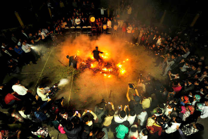 Tục nhảy lửa của người Dao trong dịp Tết.