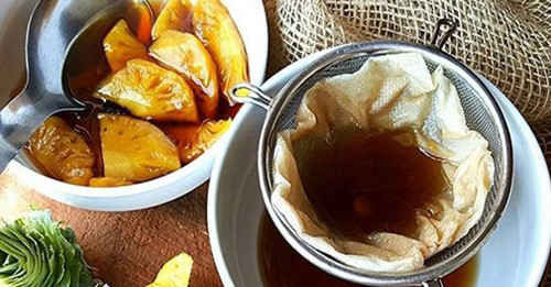 Lọc nước mắm dứa bằng vải xô sạch 2 lần để nước trong không còn cặn hay tạp chất lẫn vào. Sau khi lọc xong nước dứa bạn đổ vào nồi đun sôi lại lần nữa, để cho nguội hẳn thì đóng vào chai thủy tinh và ăn dần.