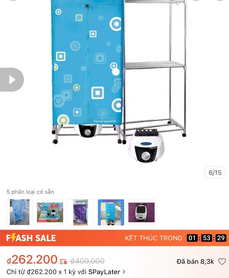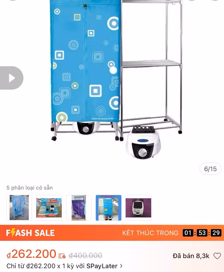 Chị Thu Hằng (Tây Mỗ, Hà Nội) cho biết, do gia đình ở chung cư và có con nhỏ nên đã mua tủ sấy quần áo giá rẻ khi hàng mua về thì lại thất vọng tràn trề.