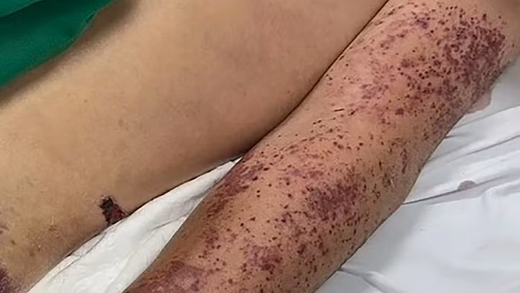 Theo các bác sĩ, có thể bệnh nhân nhiễm vi khuẩn qua thực phẩm chưa nấu chín hoặc tiếp xúc da trầy xước trong quá trình chế biến. Bệnh nhân vẫn đang được điều trị tích cực, tình trạng nặng.