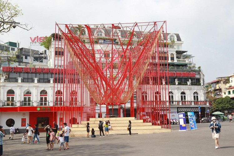 | Sáng tạo trong không gian xung quanh phố đi bộ hồ Hoàn Kiếm. |