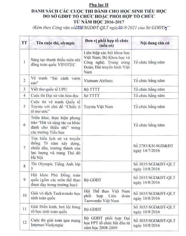 Danh sách các cuộc thi được tính điểm khuyến khích vào lớp 6 Trường THPT Chuyên Hà Nội - Amsterdam.