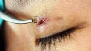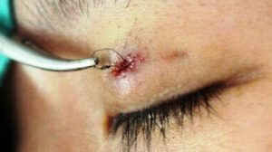 Kiểm tra mắt của bệnh nhân, bác sĩ phát hiện phần chỉ nhấn mí bị lộ ra ngoài khiến da nhiễm khuẩn, từ đó hình thành u hạt ở cả hai bên mí mắt. Bệnh nhân đã được các bác sĩ tiến hành phẫu thuật u hạt, loại bỏ mủ ở khu vực nhiễm khuẩn và cắt bỏ đoạn chỉ lộ. Nếu không xử lý sớm, bệnh nhân có thể bị “ăn mòn” hết mí dẫn tới hoại tử.