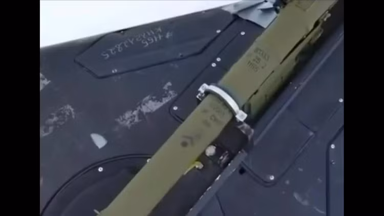 Hình ảnh được Ukraine công bố đầu tháng 12/2025 cho thấy một phi cơ Geran-2 Nga lắp giá phóng và tên lửa đối không tầm ngắn R-60, thường chỉ xuất hiện trên tiêm kích.