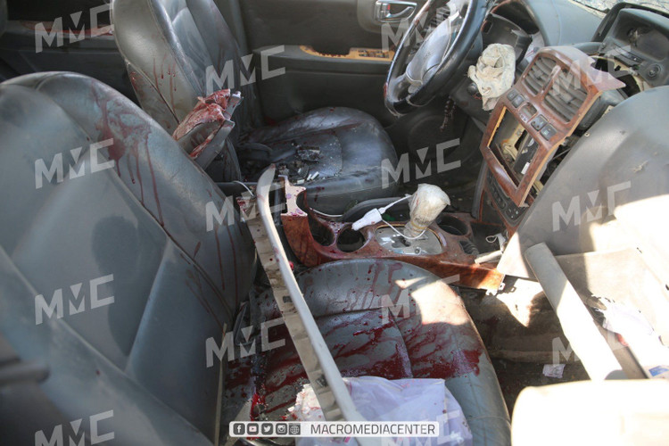 Một chiếc SUV đang đi qua gần chiếc xe máy cũng bị hư hỏng trong cuộc tấn công của UAV. 5 thường dân, thành viên trong cùng một gia đình bị thương nhẹ, bao gồm ba phụ nữ và một trẻ em.