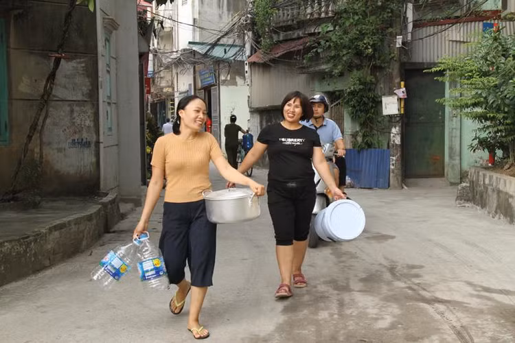 Hàng dài người dân tại một số chung cư ở Hà Nội kêu trời vì cảnh phải đi hứng nước, mua nước về để sinh hoạt được đăng tải trên nhiều diễn đàn.