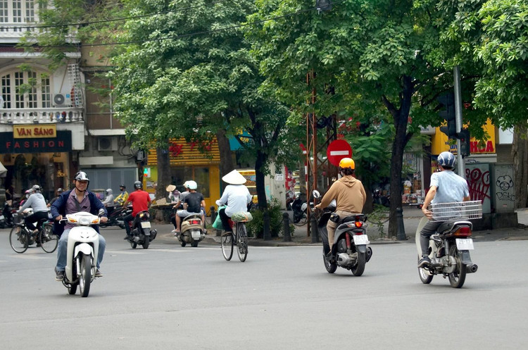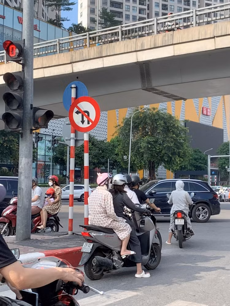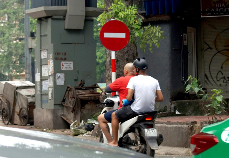 Cảnh tượng đi ngược chiều bất chấp biển báo thường thấy ở nhiều tuyến phố Hà Nội.