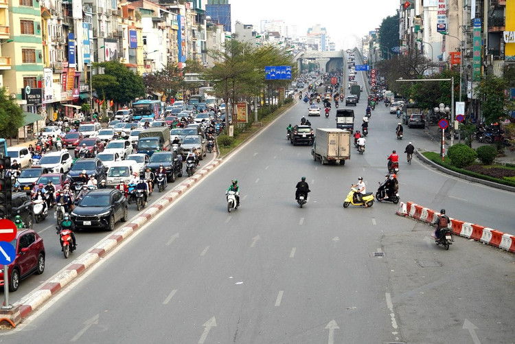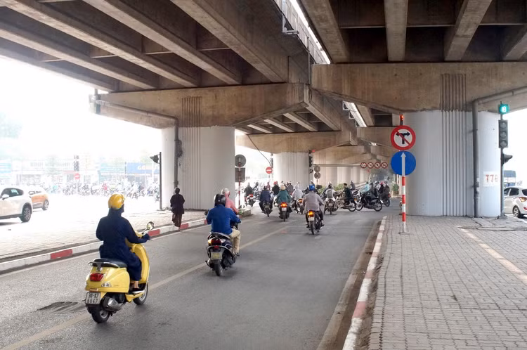 Tại nút giao khu vực Ngã Tư Sở, một số người dân ngại đi đường vòng, một số phương tiện đã quay đầu xe đi ngược chiều.