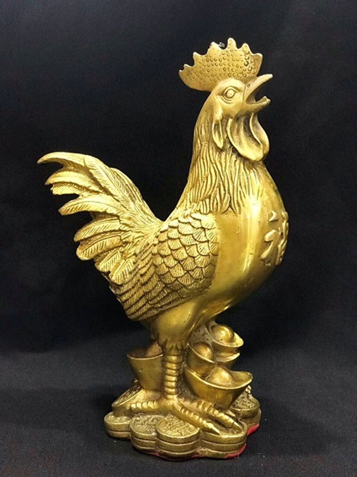 Tượng gà trống là một trong những linh vật phong thủy trấn trạch được nhiều gia đình lựa chọn. Theo tín ngưỡng dân gian, gà trống sẽ gáy khi Mặt trời mọc. Người xưa gọi gà là “dương tinh”, tức là tinh của Mặt trời. Ma quỷ đều sợ Mặt trời nên loài gà được xem có thể xua đuổi tà ma.