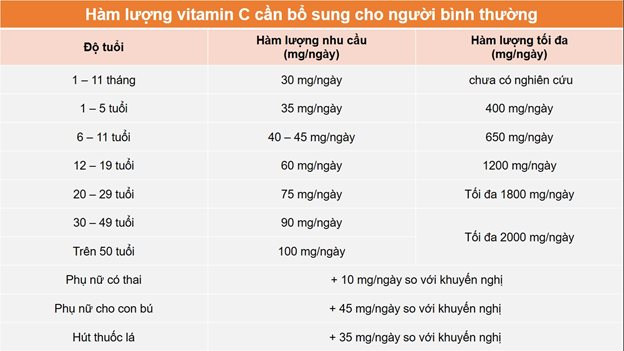 Nếu bạn chọn bổ sung vitamin C, tốt nhất nên chọn loại chứa không quá 100% nhu cầu hàng ngày. Đó là 90mg mỗi ngày cho nam giới và 75mg mỗi ngày cho phụ nữ.