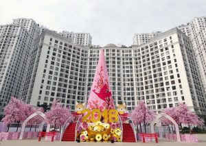 Tại Vincom Mega Mall Times City, mọi người có thể cùng nhau lưu lại những hình ảnh Tết hân hoan, đón may mắn ở Cây Tài Lộc và con đường hoa đào ven hồ nhạc nước lãng mạn.