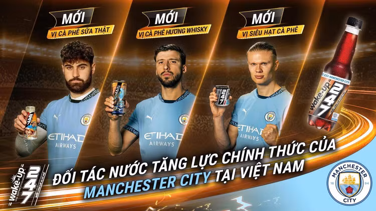 Là thương hiệu nước tăng lực thuộc Masan Consumer, Wake-Up 247 sẽ hợp tác với Manchester City – Câu Lạc Bộ có giá trị thương hiệu cao nhất Ngoại Hạng Anh (theo Brand Finance) - để truyền cảm hứng về tinh thần dũng mãnh vượt lên.
