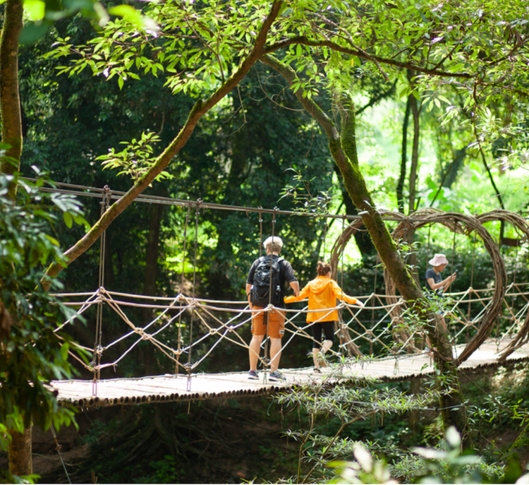 Các công trình này, gồm: khu nhà điều hành trò chơi, nhà check in, nhà bếp, 2 nhà vệ sinh, 11 chòi; xây dựng đường đi xe đạp địa hình được thi công bằng biện pháp rải đá, đổ bê tông dưới tán rừng; xây dựng sàn đi bộ bằng gỗ dưới tán rừng.