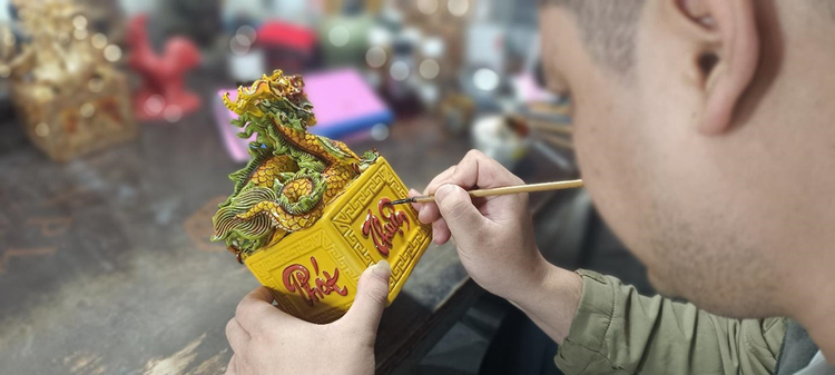 "Công đoạn khó nhất là vẽ những chi tiết ẩn khuất, nằm sâu trong các khe nhỏ trên sản phẩm", anh Dương nói.