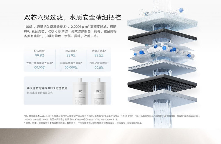 Màng lọc RO 100G có khả năng tự động sục rửa, giúp loại bỏ hiệu quả vi khuẩn, virus cũng như kim loại nặng. Xiaomi đặc biệt chú trọng đến an toàn cho gia đình.