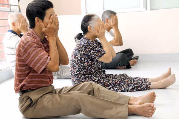 Hai bàn tay khép lại vỗ vào 2 bên tai, cong ngón tay gõ vào 2 bên đầu, đỉnh và gáy cho máu lưu thông tốt.