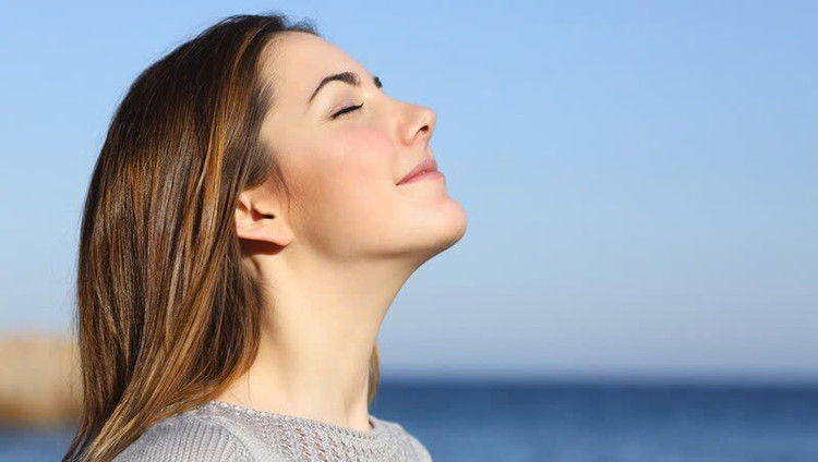 Tập thở đúng cách không chỉ giúp giảm stress mà còn giúp vùng da ở cổ không bị nhăn khá hiệu quả. Để làm được điều đó, các chị em hãy ngồi với tư thế thẳng lưng trên ghế, giữ hai tay trên đùi rồi hít thở sâu.