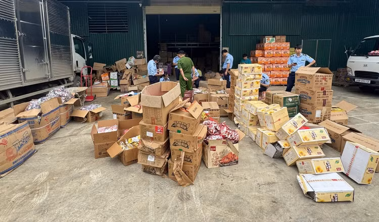 Hàng hoá vi phạm bị lực lượng chức năng kiểm tra, thu giữ/Ảnh Cục Quản lý và Phát triển thị trường trong nước